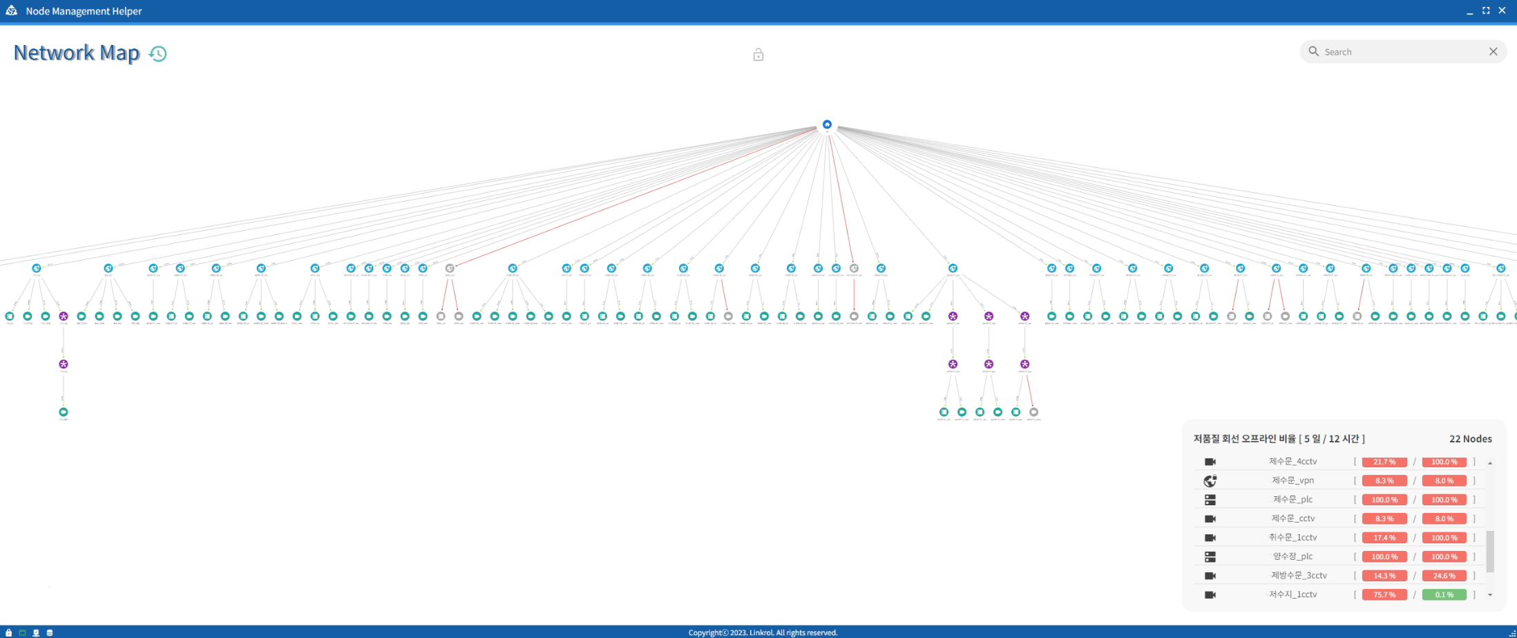 시스템은 각 장비 및 노드의 연결 상태를 실시간으로 모니터링하여, 통신 이상이 발생했을 때 어느 설비 또는 회선에서 문제가 발생했는지를 신속하게 파악할 수 있습니다.