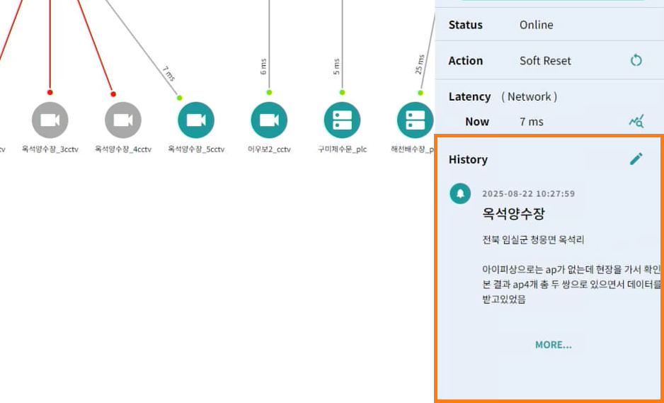 각 노드의 응답속도, 연결상태, 통신 품질 등의 정보를 실시간으로 수집·분석함으로써, 장애 발생 시 문제의 위치와 원인을 신속하게 파악할 수 있으며, 설비 간 연결 이슈나 성능 저하를 사전에 감지하여 선제적인 대응이 가능합니다.