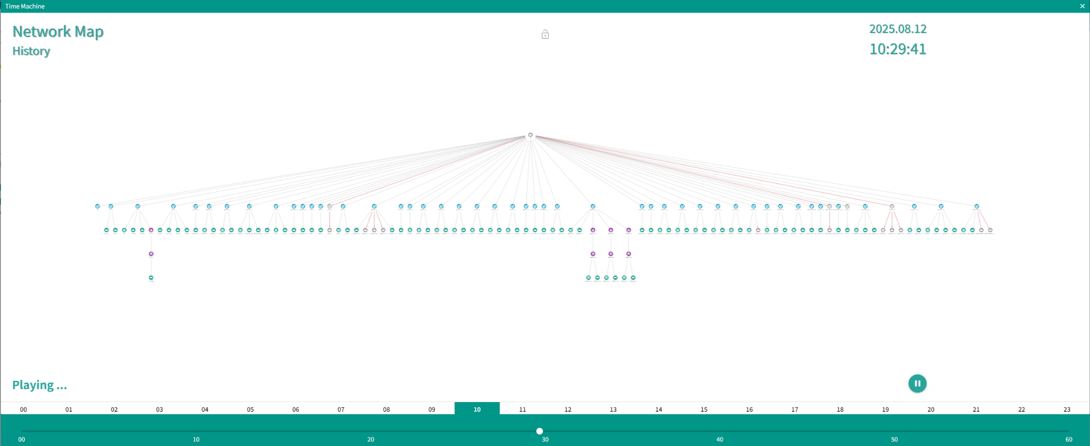 특정 날짜 및 시간대의 전체 네트워크 상태를 재현함으로써, 과거 발생한 문제의 경과를 분석하거나 보고서를 작성할 때 매우 유용하게 활용됩니다.